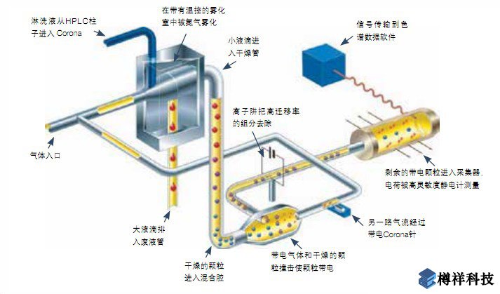 電霧式檢測(cè)技術(shù)提供與樣品中分析物含量成正比的信號(hào)。這些信號(hào)源自對(duì)以擴(kuò)散方式轉(zhuǎn)移至分析物顆粒表面的電離氮分子所產(chǎn)生的電荷的測(cè)量。該技術(shù)可量化吸引該電荷的分析物顆粒,包括不能電離發(fā)色團(tuán)或不含發(fā)色團(tuán)的顆粒。不論分析物是何種結(jié)構(gòu),結(jié)果均為準(zhǔn)確且一致的響應(yīng)。采用電霧式檢測(cè)技術(shù),您可測(cè)量任何非揮發(fā)性和大部分半揮發(fā)性分析物。