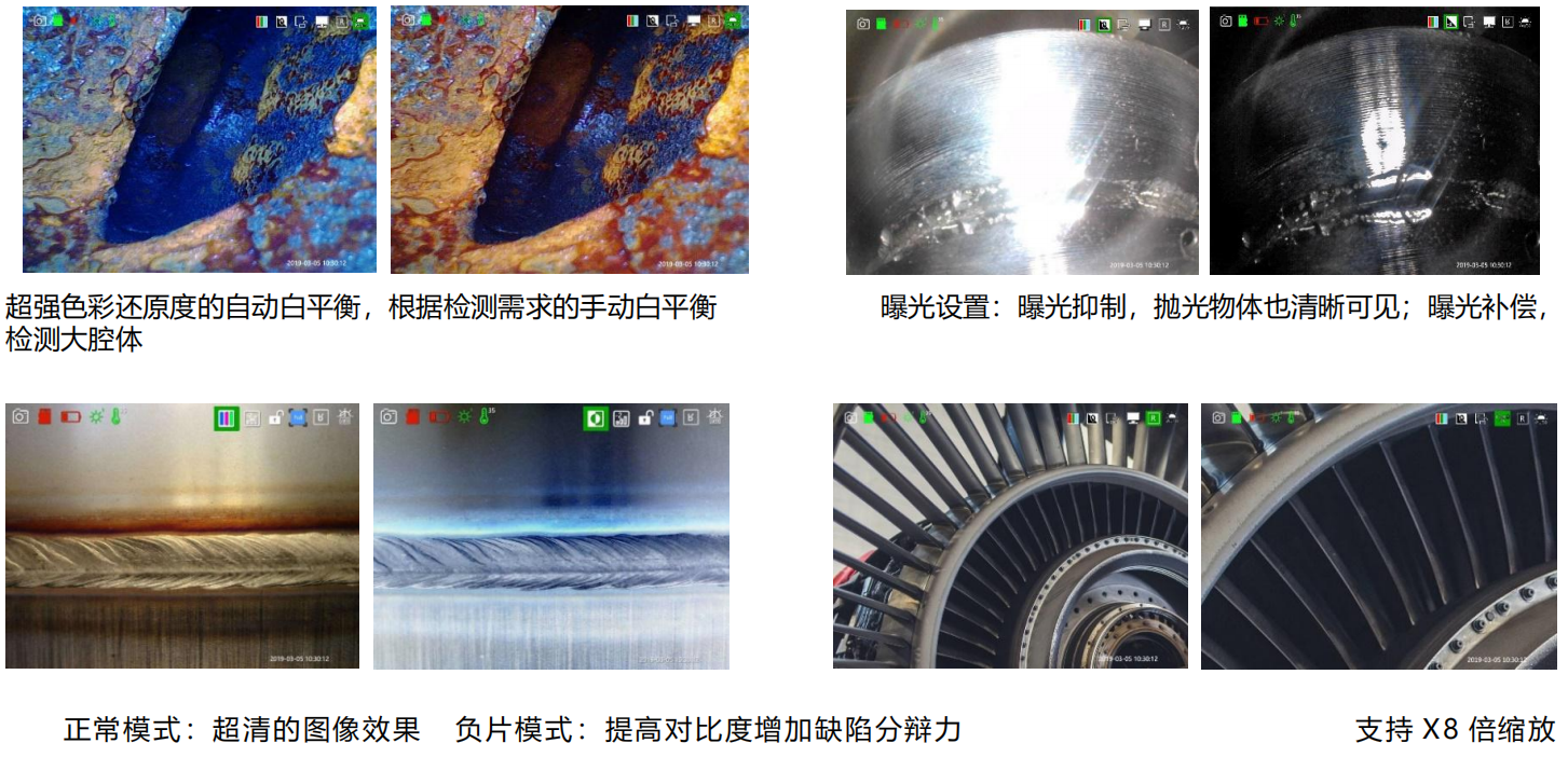 ***清工業(yè)視頻內窺鏡 ZX-S 系列是管線可更換系列的第二代***清產品,是為更進一步滿足客戶個性需求,不僅實現(xiàn)一機可配套不同的鏡頭直徑,且同步采用鏡頭與屏幕的 100 萬***清成像,5.1 英寸的***清屏幕呈現(xiàn)。通過對圖像彩色與白平衡的自動處理能力,實現(xiàn)對不同的大小空間內的自適應圖像處理;同時通過對曝光抑制與補償?shù)墓庹赵O計,可針對反光或吸光的環(huán)境背景,而內窺鏡呈現(xiàn)的圖像都能始終如下,保證圖像的***清還原、***清呈現(xiàn)、細節(jié)與缺陷一目了然!
