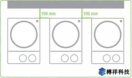 確保儀器放置間距合理,儀器之間、儀器距離四周墻壁至少100 mm;儀器距離上方至少800 mm,如下圖: