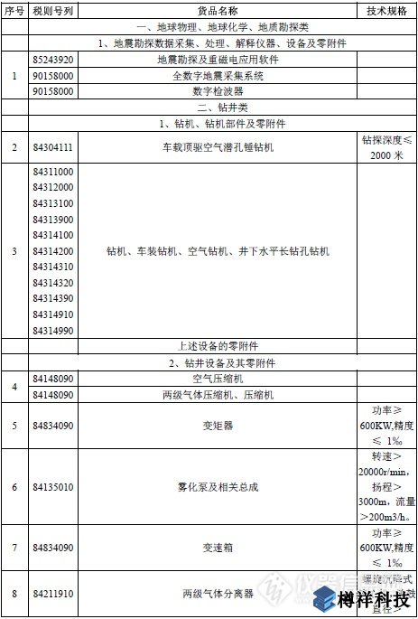 附表:勘探開發(fā)煤層氣免稅進口物資清單